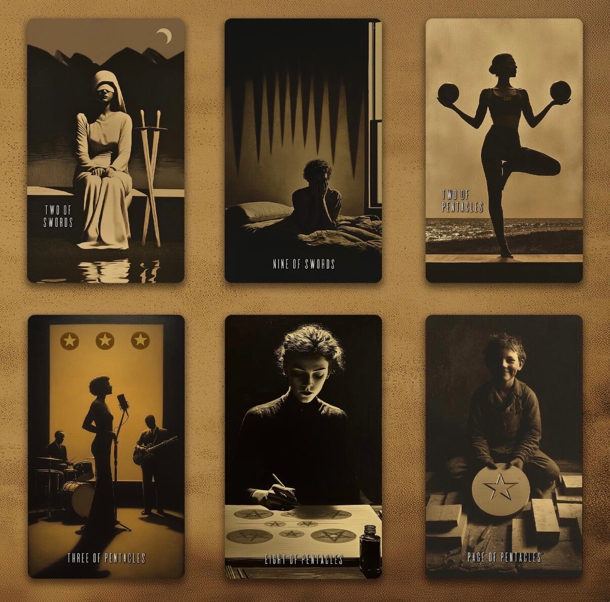 このタロットデッキは、色あせたヴィンテージ